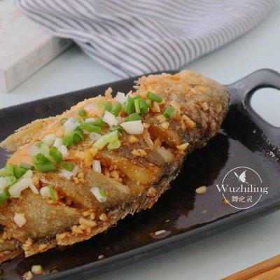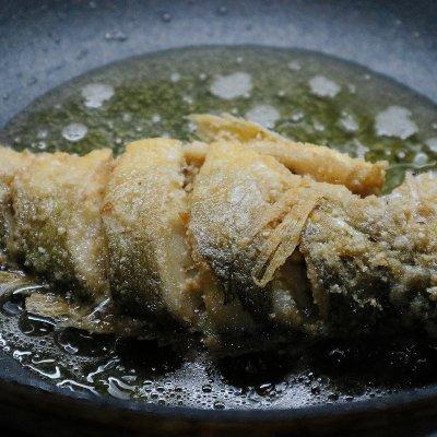 6、中途可以不断将热油浇在鱼身上,别看这几个小动作,可以让成品外形更好看口感也更酥脆的。
