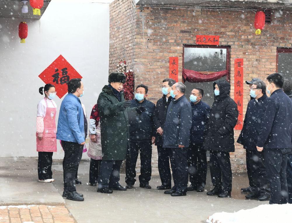 2022年1月26日下午,习近平在山西临汾市霍州市师庄乡冯南垣村受灾村民师红兵家看望。