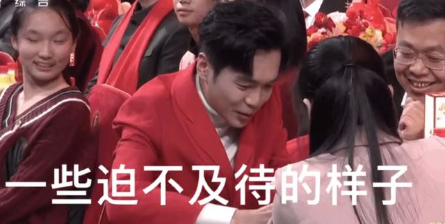 秦海璐穿了紫色西装,都是深色系,倒还不是很显眼。不过也正是有这些明星的“别样”穿搭才显得舞台配色很舒适,如果全是红色,也会造成审美疲劳。
